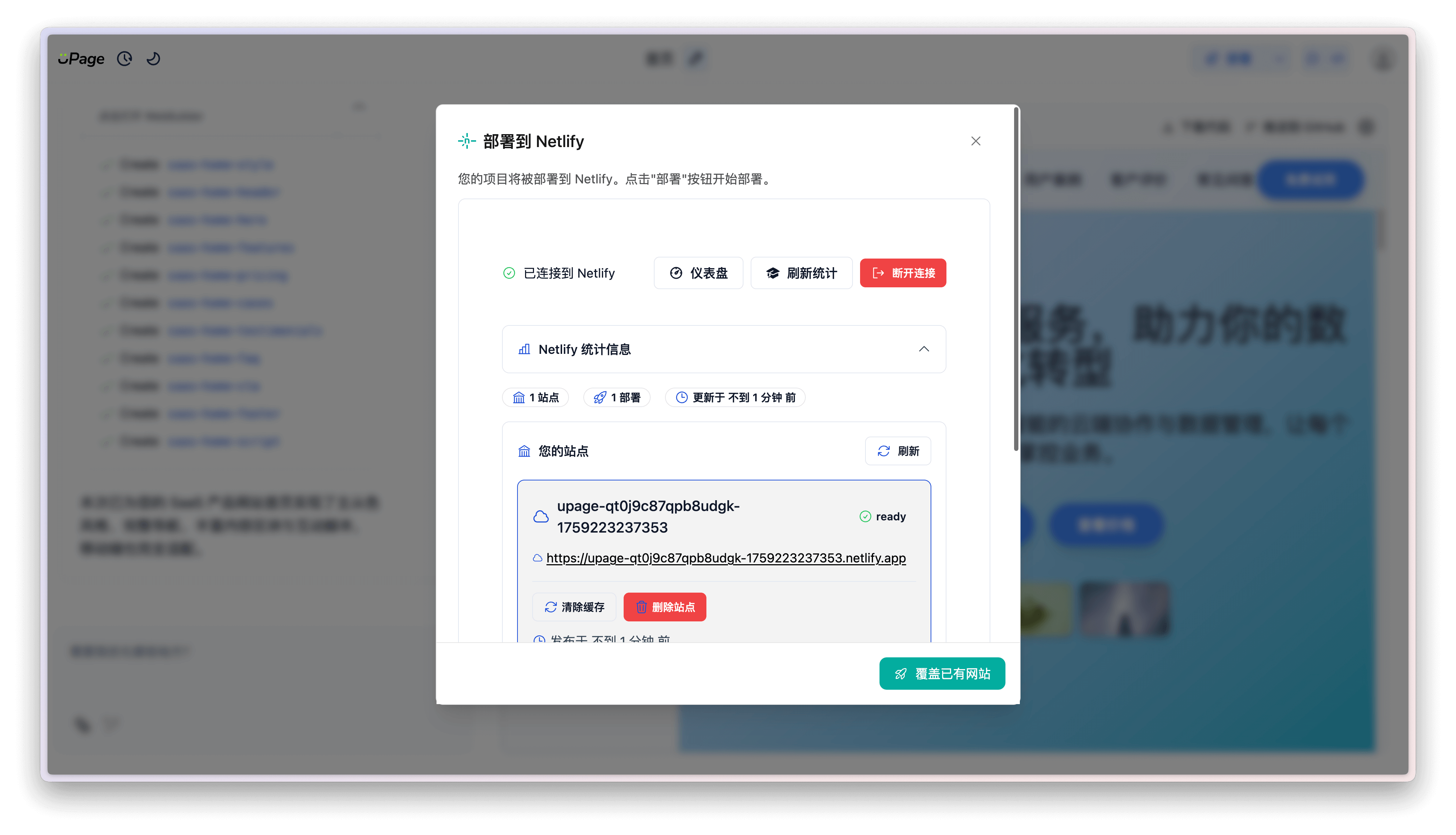 点击 部署到 Netlify 按钮后,会自动将生成的页面部署至 Netlify 中。
